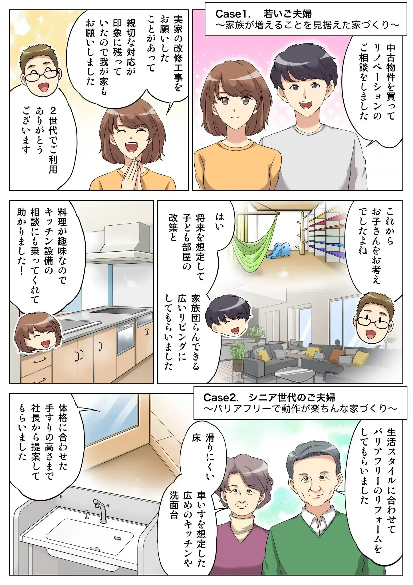 お客様のご要望は十人十色。リフォームやリノベーションには、思い思いのこだわりを詰めたうえで実現したいものです。お客様の理想を実現できるよう、ご要望に耳を傾けご提案ができるよう、柔軟に対応いたします。